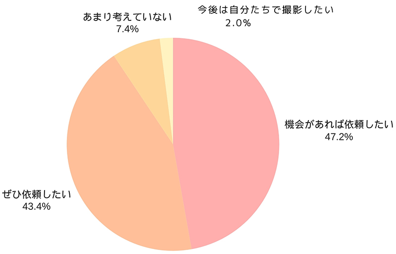 「ぜひ依頼したい」(43.4%)と「機会があれば依頼したい」(47.2%)が大半を占め、撮影体験への満足感が高いことがうかがえます。