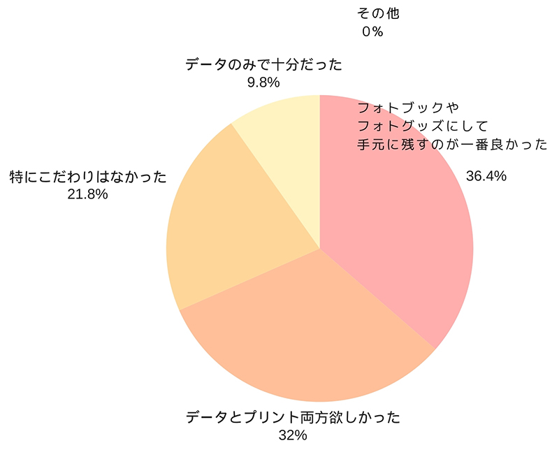 母数は少ないものの、データ保存派の過半数近くが写真をほとんど見返していないことから、写真を“手に取れる形”で残すことで体験価値が大きく変わる可能性が示唆されます。