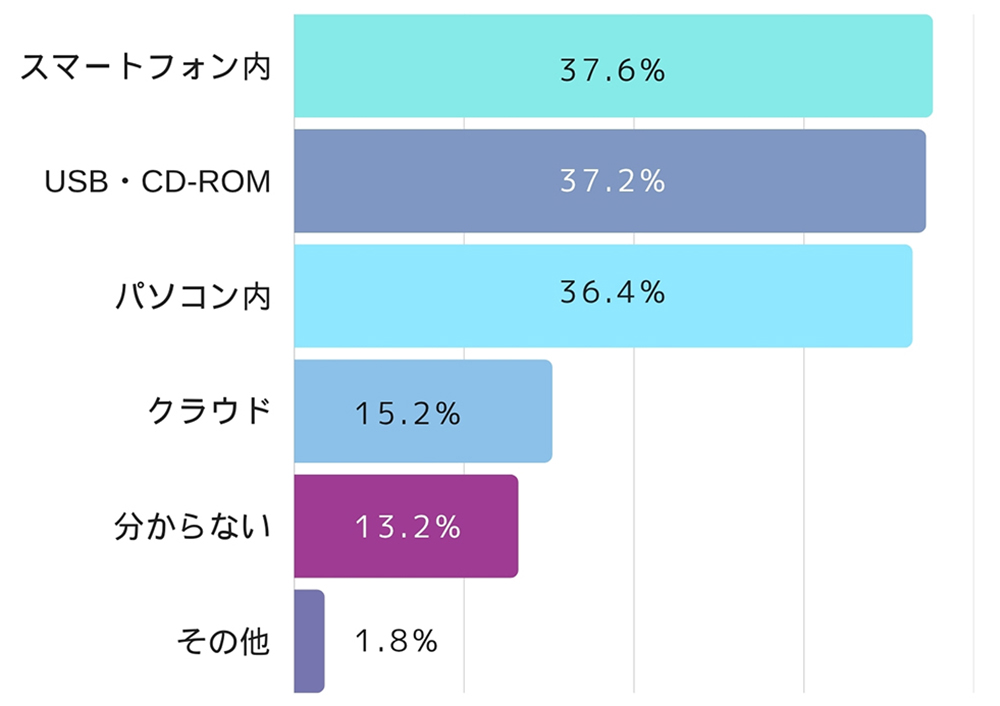 「分からない」という回答も13.2%にのぼっており、保存方法の整理や把握が不十分なケースも少なくないことが明らかになりました。日常的に使うデバイスで手軽に保管する反面、保存の長期性や安全性には課題が残る結果といえるかもしれません。