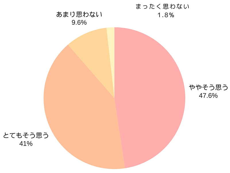 「とてもそう思う」(41.0%)と「ややそう思う」(47.6%)が大多数を占め、否定的な回答はわずか11.4%にとどまります。