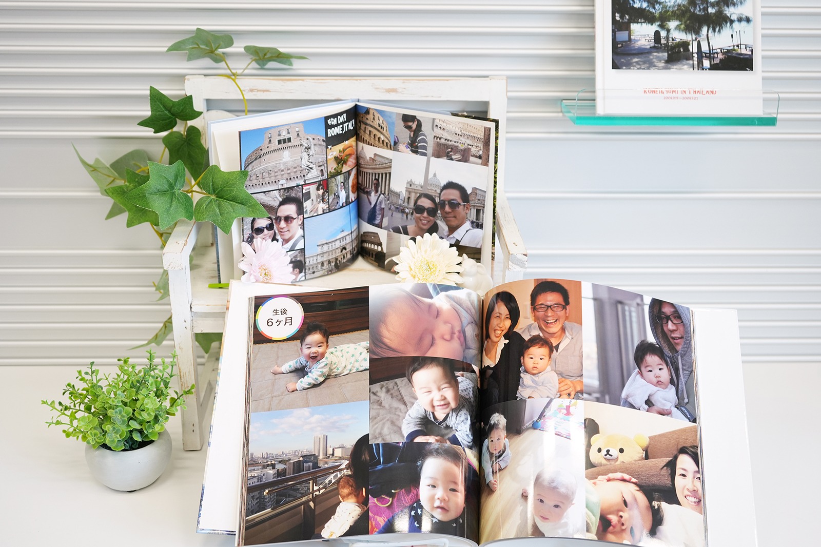 15年前の新婚旅行のフォトブックも、11年前の子どものハーフバースデーのフォトブックも、いつでも見返す宝物です。